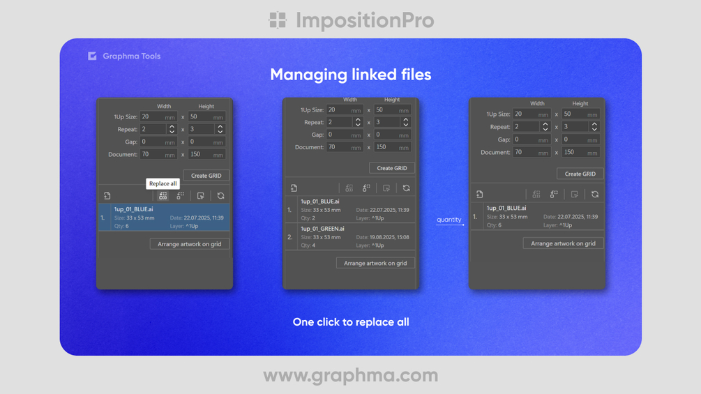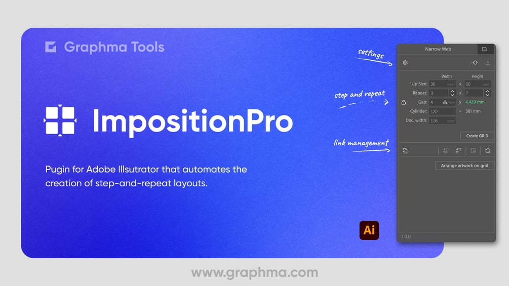 Imposition plugin for Adobe Illustrator automates step‑and‑repeat layouts by generating precise grids, embedding your artwork, and adding customizable dynamic marks in seconds.